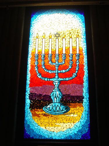 Judica Engraving International has been creating stain glass windows for decades. In this particular piece there is a beautiful Menorah that is light up. All the colors blend so nicely together, this stain glass is appropriate for any Jewish Building especially near the time of the holiday Chanukah. Please call 718-436-3136 for details